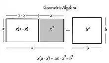 - The discovery of incommensurability meant that there existed geometric magnitudes that could not be measured by numbers! ...It followed that geometric magnitudes could not be manipulated without hesitation in algebraic computations just as though they were numbers. ...The Greek answer ...is presented in the geometric algebra of Books II and VI... The product of two lengths and is not a third length, but rather the area of a rectangle with sides a and b. ...