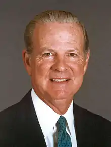 James Addison Baker, III (born April 28, 1930) worked in President Ronald Reagan's administration, first as Chief of Staff from 1981 to 1985, then as Secretary of the Treasury from 1985 to 1988. After running George H.W. Bush's successful presidential campaign in 1988, Baker was appointed Secretary of State by President Bush in 1989. The James A. Baker III Institute for Public Policy at Rice University in Houston, Texas is named after him. In 2006, he was named the Republican co-chair of the newly-created Iraq Study Group (Lee Hamilton was named the Democratic co-chair).