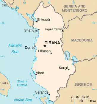 | Geographic coordinates: | 41 00 N, 20 00 E |