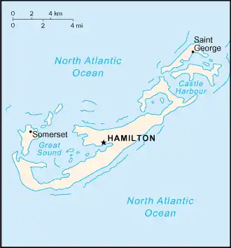 | Administrative divisions: | 9 parishes and 2 municipalities*; Devonshire, Hamilton, Hamilton*, Paget, Pembroke, Saint George*, Saint George's, Sandys, Smith's, Southampton, Warwick |