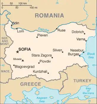 | Land boundaries: | total: 1,808 km border countries: Greece 494 km, Macedonia 148 km, Romania 608 km, Serbia and Montenegro 318 km, Turkey 240 km |