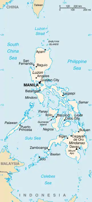 | Elevation extremes: | lowest point: Philippine Sea 0 m highest point: Mount Apo 2,954 m |