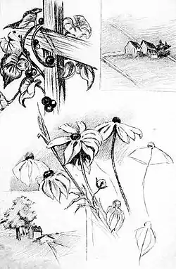 From the field of corn choose a blade of wheat with perhaps the tendril of a convolvulus creeping up its stalk; a cluster of poppies, a tall grass. If a butterfly flutters near, watch intently the angle of his wings, the exquisite poise of his body, the clutching, delicate strength of the tiny legs, and draw your remembrance of him.