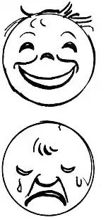 Our little friends Mr Sad and Mr Glad, whom we are so fond of tracing on the margin of our books, have a good deal to commend their honest countenances. They have the lines of laughing and crying faces crudely expressed. With chin upraised and eye twinkling, cheeks pushed up in dimpling curves, and nostrils and lips curled upward—behold Mr Glad!