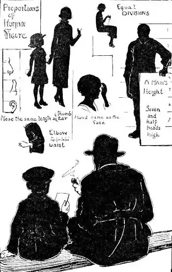 And, having gleaned these few ordinarily accepted rules, you will probably find your next model will have arms too long, legs too short, and a nose disagreeing most profoundly with the length of the thumb. Nature is a law unto itself, and I bring these few suggestions to you with some misgivings.