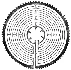 The maze in Chartres Cathedral, of which I give an illustration (Fig. 2), is 40 feet across, and was used by penitents following the procession