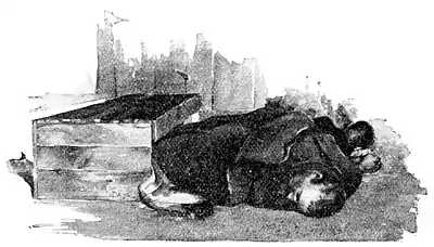 of flopping over on the stone pavement at intervals, and thus warming one side at a time, and with an empty box to put the feet in, it is possible to keep reasonably comfortable there even on a rainy night. In summer the yard is the only one in the neighborhood that does not do duty as a public dormitory.