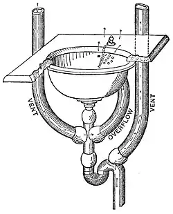 The overflow-pipe of our common set-basins forms a receptacle for the accumulation of a thick deposit of filthy slime in its interior, which, by putrefying, pollutes the air of houses to a dangerous
