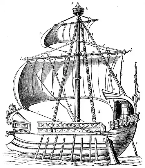(Whether a topsail was really used in such a vessel is very doubtful.)