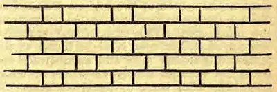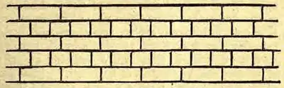 What is called the old English bond method of laying a wall, which is the strongest mode, is to arrange the bricks in alternate courses of stretchers and headers, the former being bricks laid longitudinally with the wall, and the other transversely, presenting their ends or heads only to the face of the wall. Next the corner, a quarter brick on the row of headers must be introduced, so that the stretchers overlying may lap to the middle of the second headers. The headers are also called binders, from their effect in binding the bricks of the other courses together. Owing to their presenting a greater number of joints in the face of the wall, their effect is not so pleasing as is that of the stretchers. In New York city, it is required by the fire laws that one course in five shall be headers. This is effected, while stretchers only are seen on the face, by laying every fifth course in what is called herring-bone, breaking off the back corners of the stretchers to let the corners of the brick behind come nearly to the outside line of the wall.