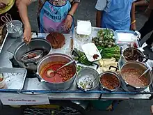 - 🌍 Roti-Mataba, 136 Phra Athit Rd (in front of Phra Sumen Fort), ☏ +66 2 282-2119. Tu-Su 09:00-22:00. This immensely popular eatery is one of the few in the area serving Thai-Muslim dishes, such as roti, mataba (a kind of stuffed pancake) and massaman curry. Sitting downstairs gives the best local experience, as you can smell the food being prepared and it feels very cramped. Upstairs has air-conditioning and is more comfortable. A bit of a downer is that the snacks are fairly small, so order two or more meals if you are really hungry. 50-100 baht.