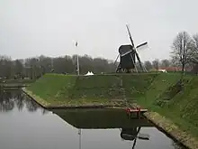 The original Bourtange 🌍 Standard Mill was on the Mill's bastion but was moved to the hamlet Ter Haar after the military left the fort. Today, the original still stands in Ter Haar, where it is the only remaining mill of this kind in the Northern Netherlands. A nice replica has been built in Bourtange and once again stands on the reconstructed bastion.