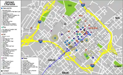 - 🌍 Harvey B. Gantt Center for African-American Arts & Culture, 551 S Tryon St, ☏ +1 704-547-3700. Tu-Sa 10AM-5PM, Su 1PM-5PM, closed M. Features a regular schedule of cultural events and exhibits, including theater and gallery productions. $12 adults, $10 seniors/students, $8 children, free under 3.