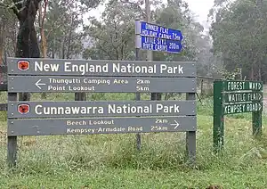 - Cunnawarra National Park is a world heritage site, as part of the Gondwana Rainforests of Australia. It may not have much, but the Beech lookout is definitely a worth if you don't mind diverting off Waterfall Way. It's about 70km from both Armidale and Dorrigo. The park is home not only to the imposing eucalyptus trees (which are the tallest in NSW) but also to various endangered wildlife species. Here you can see glossy black cockatoos, rufous scrub-birds, powerful owls and spotted-tailed quolls.