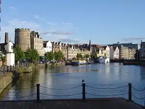 Leith is the historic port of Edinburgh the capital of Scotland, north of city centre on the shore of the Firth of Forth. It's now only a minor port and has lost much of its industry, to be replaced by retail, bistros and cobbled wharves. In 2021 its population was 24,620, with about the same again in nearby districts such as Newhaven also described on this page.