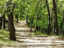 The Calumet Trail, a multi-use, crushed-limestone trail where cycling is acceptable, also runs in a generally east-west direction through the eastern section of the park, providing access to the Indiana Dunes State Park and towns to the east. It skirts a wooded area where deer and other wildlife may often be seen, especially early in the morning. It also follows the path of several large power lines.