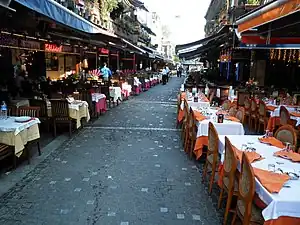 - 🌍 Rumeli Cafe, Ticarethane Sokak No:8 (near Divanyolu Caddesi, about one block from the Basilica Cistern), ☏ +90 212 512 00 08. On a relatively quiet street but close to all the attractions of Sultanamet. Serves mostly traditional Ottoman and Turkish dishes, with lots of lamb on the menu. Staff are friendly and there are tables indoors and on the sidewalk. Sometimes overcharge.