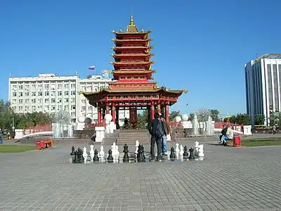 - Chess-City โ an administrative unit within Elista, it often serves as a venue for multiple international chess events. The Chess-City complex also hosts meetings of Russian state officials as well as Russian school olympiads.