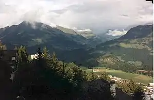Leysin is in the Alpes Vaudoise roughly above and one mountain over from Montreux. The panorama includes all of the Alps Vaudois, including the Mont Blanc to the Eiger. It is just as, or more impressive as those found further up into Canton Valais, and prices that are a bit more competitive.