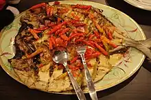 Pisang epe can be found at Losari Beach. It is a pressed grilled banana, served with melted brown sugar. Available with chocolate and/or cheese topping, and durian (seasonal) flavor. Buroncong, an early morning breakfast cake, can be found at Losari Beach. Baked on firewood. It's made of grated coconut, flour, etc. Sop Saudara, a traditional South Sulawesi soup, can be found almost anywhere. It contains meat, liver, lung, etc. However, you may choose the ingredients you want in your soup. Pisang Ijo is a banana wrapped in thick green rice flour layer, served with condensed coconut milk and syrup. The most famous one is made by Bravo Restaurant on Jl. Andalas, but it can also be found at Nyuk Nyan restaurant on Jl. Irian and Jl. Bali, sometimes hotels serve Pisang Ijo as well. Coto Makassar is a traditional makassar soup. Quite similar to Sop Saudara, but has different taste. Usually served with rice cake. It's very easy to be found around Makassar. Pangsit Mie (Mie Pangsit Palu) is noodle served with BBQ pork, chicken and wontons. Easy to be found around the Chinatown (Jl. Sulawesi, Jl Lombok, Jl. Sangir and surrounding area). They usually available only until lunch time. Mie Kanton is a Cantonese-style fried noodle. It's deep fried or usually grilled noodle, served with condensed soup containing vegetables, fried meatball, and pork meat. Can be found around Chinatown (as mentioned above). Pallubasa is a Makassar style meat soup. The soup is spicy and contains grated coconut. Nasi Kuning is yellow rice served with various dishes. One of the most favorite breakfast in Makassar. Some nasi kuning seller sell at night. Songkolo is stirred glutinous rice, served with fried grated coconut, salted fish and sambal (traditional chili sauce). It's quite difficult to find songkolo around Makassar nowadays. It's usually available at the traditional market or traditional food seller. Try Bacan Market (Pasar Bacan) in the morning if you want to have songkolo.
