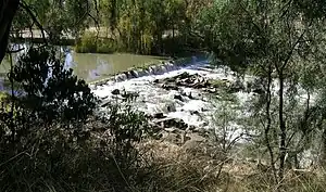 - Walgett - south-west of Moree: 215 km via Gwydir Highway/B76 westbound, past the Bullarah Bush Cafe, turn right at the intersection with Merrywinebone Road and continue on the Gwydir Highway/B76 across the Grawan Creek Bridge, cross the Barwon River Bridge, in Collarenebri turn left onto Herbert Street and continue on the Gwydir Highway/B76, turn left at the intersection with the Castlereagh Highway/B55 and continue southbound, cross the Barwon River bridge, pass the turn-off to the Kamilaroi Highway on the left, cross the Namoi River bridge (2 hr 19 min)