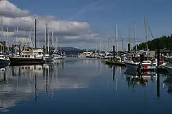 - 🌍 Washington State Ferries, ☏ +1 206-464-6400, toll-free: +1 888 808-7977. Washington State Ferries offers many daily services from Anacortes to Friday Harbor, about five daily inter-island roundtrips from Lopez, Orcas, Shaw. Up to two (summer seasonal) ferries from Sidney, British Columbia. Check schedules ahead of time and arrive early especially during peak periods; lines can be long. They accept bicycles and canoes onboard and vehicle reservations . Service to Sidney has been suspended since the Covid-19 pandemic and the operator has announced that service to Sidney is suspended until at least 2030 due to the lack of available ferries and crew.