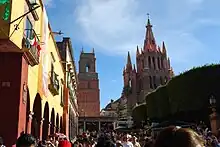 - 🌍 Parroquia San Miguel Arcángel, Plaza Principal s/n (by the Jardín), ☏ +52 415 152 4197. Daily 08:00-20:00. The marvelous pink granite parish church, looking like an ornate candy sculpture. The building itself dates from the 16th century, while the façade was designed in the 19th century by self-taught indigenous architect Zeferino Gutíerrez, who is said to have been inspired by a postcard depicting a European Gothic cathedral.