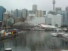 - Walk south along the shoreline of Darling Harbour. This large public space is characterised by modern architecture. Walk past the site of the new International Convention Centre Sydney (which opened in 2016) on your right. The Imax Cinema looms on your left as you continue south under the freeways into Tumbalong Park.
