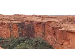 King's Canyon is one of the major tourist attractions in the Red Centre in Australia. The scenic landscape in and around the Canyon is the result of millions of years of erosion. Enigmatic domes formations, sharp cliffs, and good views of the surrounding desert reward the visitor taking the Rim Walk around the Canyon. Watarrka has been home to Luritja people for several thousands of years, and places in the canyon are still sacred sites.