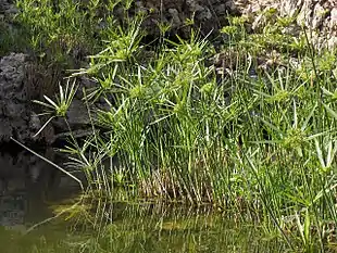 From Demotic b (/*βoːʔ/, “bush”), from Egyptian bꜣt (/*ˈbaːʀat/, “bush, especially Cyperus papyrus”)