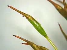 - (b) sporophyte with foot reduced, the entire sporophyte enveloped by the calyptra, which is ± stipitate at the base.