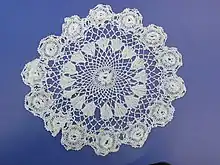 - (Judaism) A similar circular piece of lace worn as a head-covering by some married Jewish women.
