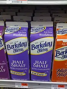 This food product (half and half) is labelled "fat free", meaning it contains no detectable fat.