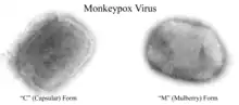 - (pathology) A viral disease, of primates and some other mammals, related to smallpox, caused by the Monkeypox virus.