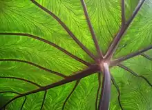 - (botany) In leaves, a thickened portion of the leaf containing the vascular bundle.
